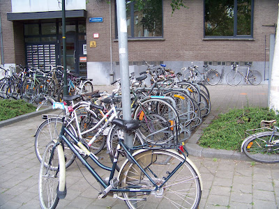 In totaal 68 stallingsplaatsen, er stonden 81 fietsen in de stallingen, of er net naast. De vele losse fietsen op de stoep tegen de gevels werden niet meegeteld. Deze stallingen zijn dus voor 119% gevuld.